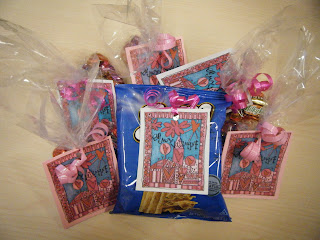 This lead me to what turned out to be a delightful blog called Homegrown Hospitality. The author, Stephanie, had posted a PDF file of a Valentine card to print on cardstock and attach to treat bags. I instantly felt the need to create Valentine treat bags for all of my co-workers, so I started by printing the card on both salmon and white cardstock. Several days later on Monday evening, I visited my sister's house after work and took my nieces to Wal Mart to help me pick out candy for the treat bags. Naturally, I agonized over what to get (it's the perfectionist in me), and I ended up with five bags of candy. Surprisingly, we could not find any treat bags throughout the many isles of Valentine's Day paraphernalia. Just as I was about to admit defeat and simply purchase sandwich bags, we found clear treat bags in the Wilton isle.